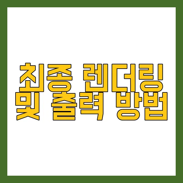 렌더링 과정에서 첫 번째로 확인해야 할 설정은 출력 해상도입니다. 해상도는 이미지의 픽셀 수로, 일반적으로 가로 x 세로의 형태로 설정됩니다. 예를 들어, 고해상도 출력을 원하신다면 1920x1080 픽셀 또는 3840x2160 픽셀(4K 해상도)으로 설정할 수 있습니다. 이때, 비율 조정도 신경 써야 할 점입니다. 일반적으로 사용하는 16:9 비율을 유지하면 다양한 플랫폼에서 호환성이 좋습니다.