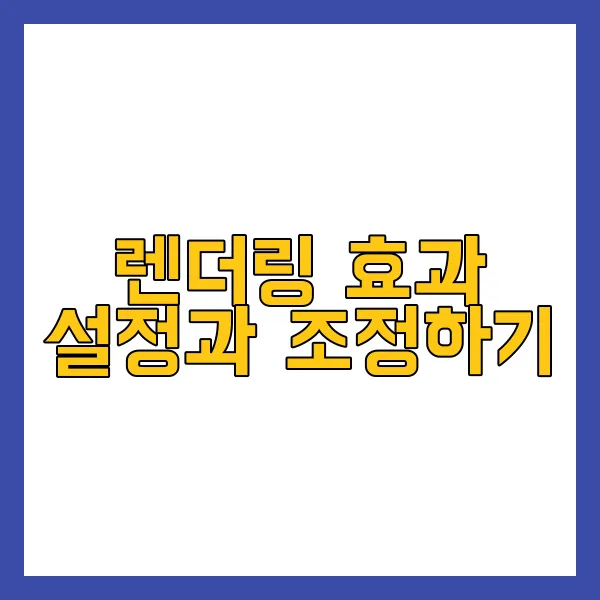 렌더링 효과를 조정하는 또 다른 유용한 방법은 비디오 시퀀서의 ‘Overlay’ 섹션을 이용하는 것입니다. 이곳에서는 렌더링된 이미지 위에 다양한 필터와 효과를 추가하여 더욱 다채로운 비쥬얼을 만들 수 있습니다. Blur, Glare, Vignette 같은 효과를 적절히 활용하면, 특히 ‘Glare’ 효과는 빛의 반사와 확산을 조절하여 씬에 극적인 포인트를 줄 수 있습니다. 비율 조정은 눈에 띄는 변화를 만들어낼 수 있으므로, 각 효과의 강도를 신중하게 조절해야 합니다.