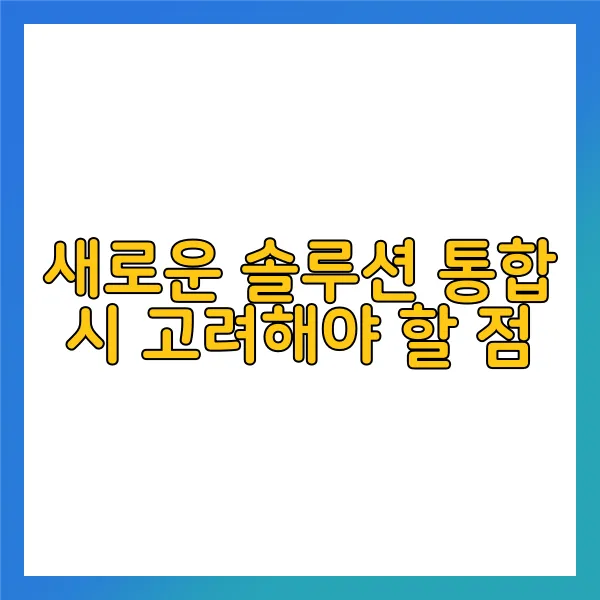 따라서, 위의 여러 요소를 균형 있게 반영하여 학습하고 준비하는 것이 성공적인 솔루션 통합의 열쇠입니다. 이렇게 하면 예상하지 못한 문제를 최소화하고 새로운 솔루션을 통해 비즈니스 가치를 높일 수 있는 기회를 극대화할 수 있을 것입니다. 과연 쉽지 않고 많은 준비가 필요하지만, 올바른 전략적 접근을 통해 그 결과는 만족스럽게 만들어질 것입니다!