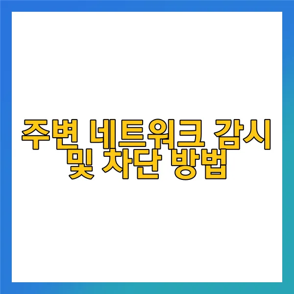 이와 같은 주변 네트워크 감시 및 차단 방법들은 가정이나 기업의 정보를 지키는 데 있어 중요한 역할을 합니다. 각 방법들을 체계적으로 활용하면, 해커들의 접근을 어렵게 만들어 안전한 인터넷 환경을 조성할 수 있습니다.