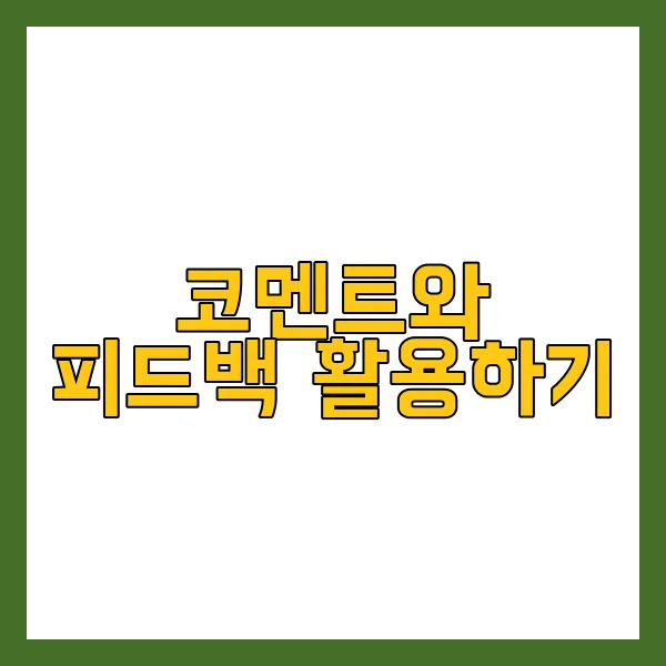 이러한 방법들을 통해 팀 프로젝트에 있어 코멘트와 피드백의 활용도가 높아진다면, 팀의 전체적인 역량이 더욱 강화될 것입니다. 팀원 간의 원활한 의사 소통과 문제 해결 능력을 통해, 프로젝트의 성공 가능성을 높이는 데 큰 기여를 할 수 있습니다.