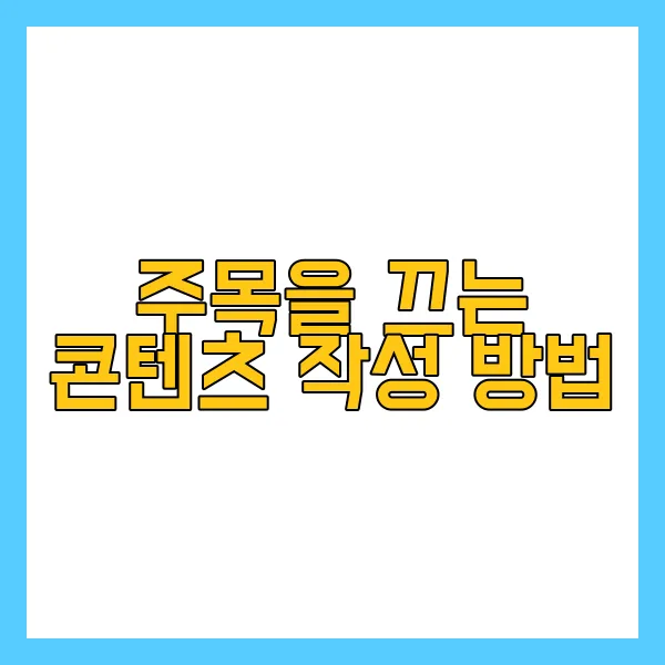 이처럼 주목을 끄는 콘텐츠 작성 방법은 다양한 기술과 전략을 결합하여 청중의 관심을 사로잡고, 중요한 메시지를 효과적으로 전달하는 데 큰 역할을 합니다. 자료와 예시를 통해 콘텐츠의 가치를 더욱 부각시키는 것이 중요합니다.